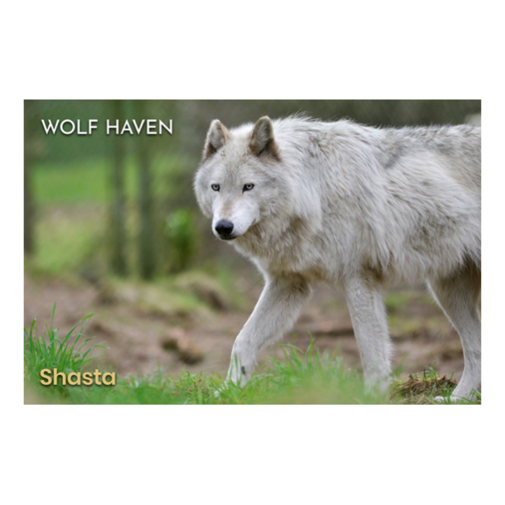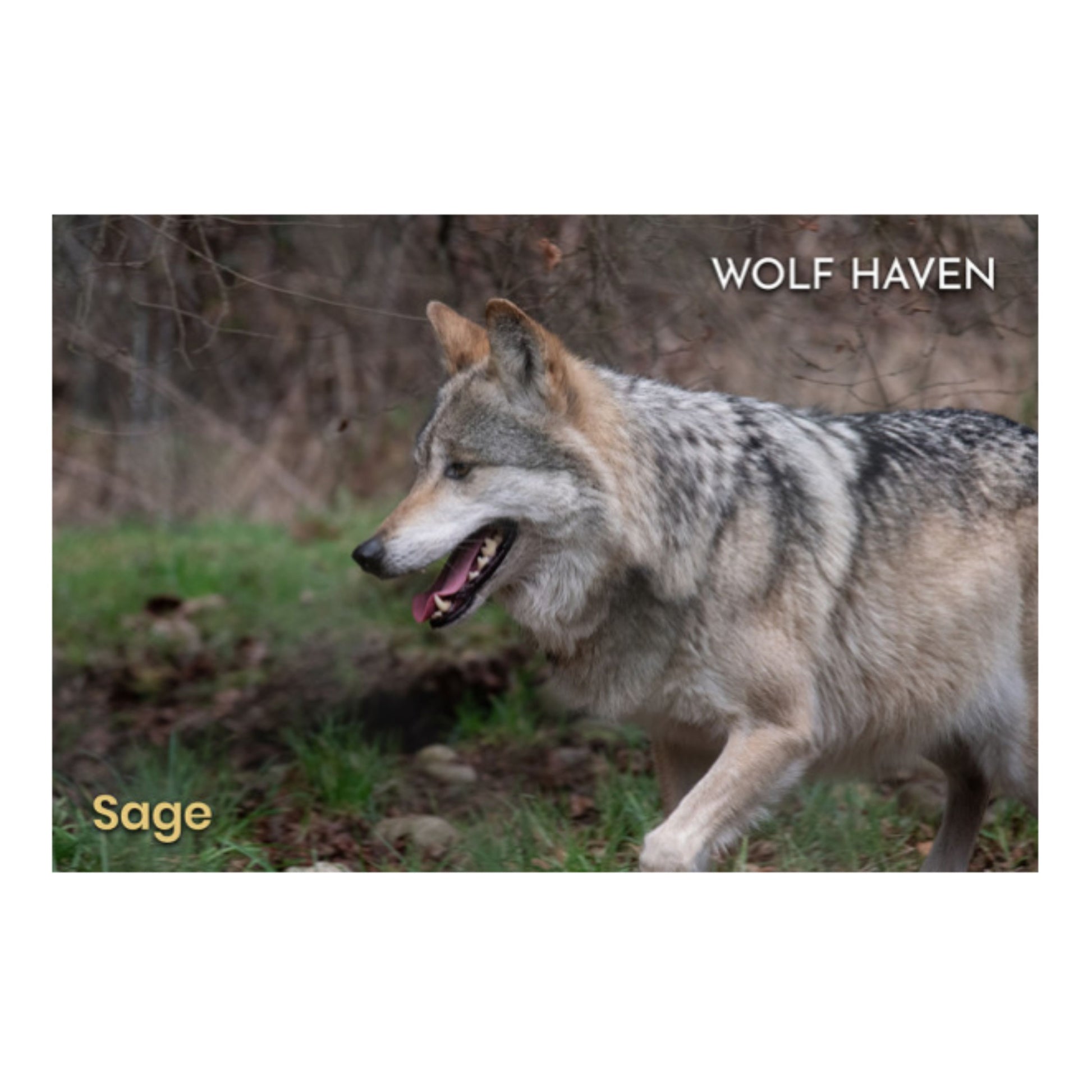 Custom paper postcard featuring a photograph taken at Wolf Haven International. Choose from two options of brightly colored prairie flowers or an elegant photos of resident gray wolves, Mexican wolves and wolfdogs.