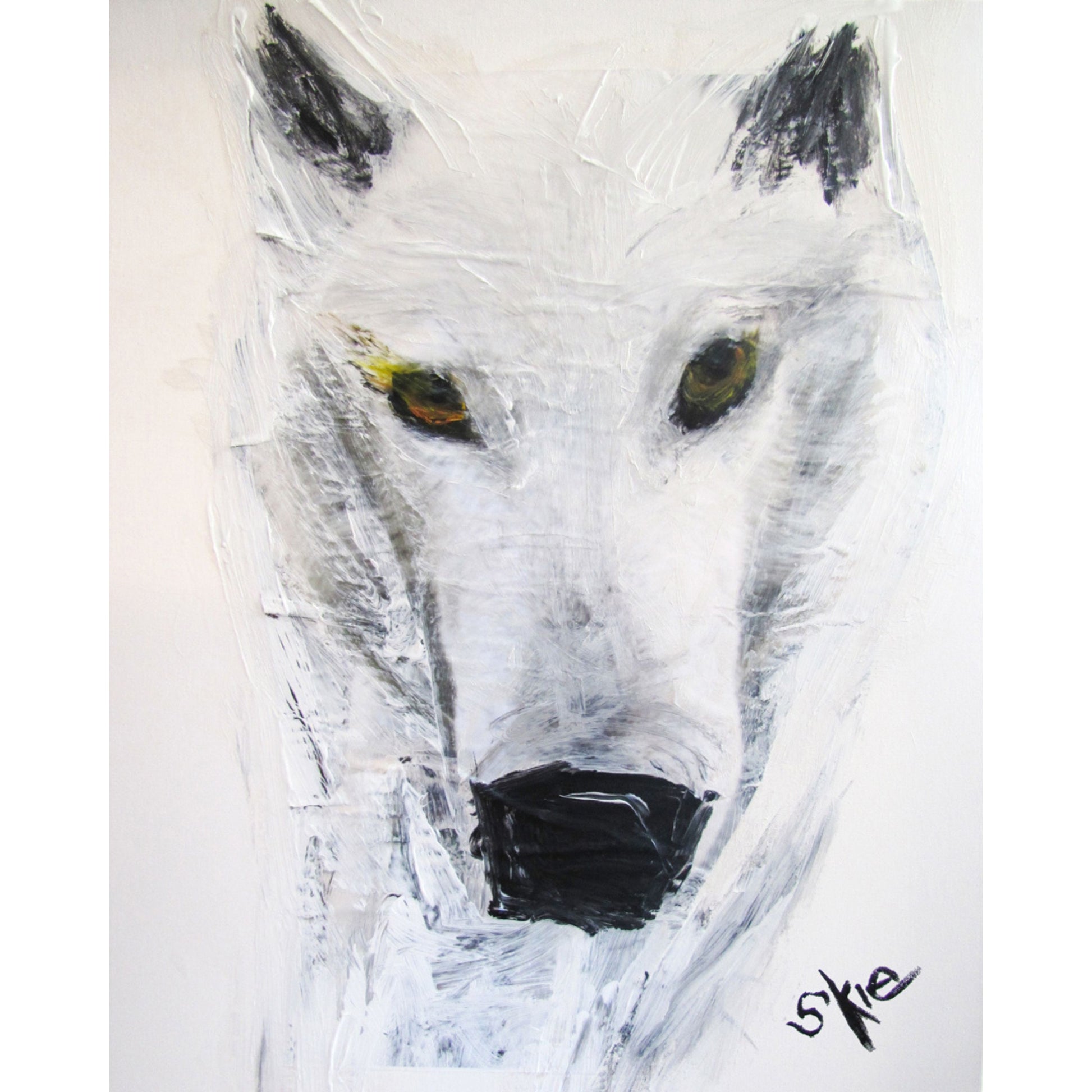 In 2024, Wolf Haven lost a dear friend and colleague with the passing of Skie Bender. Skie was incessantly curious about the world around her. Her unique observations inspired her painting, writing, and music. These prints are of some of the paintings of Wolf Haven residents she generously donated during her lifetime. The prints come in black mats, together measuring 11x14", and have the wolf and artist blurbs.