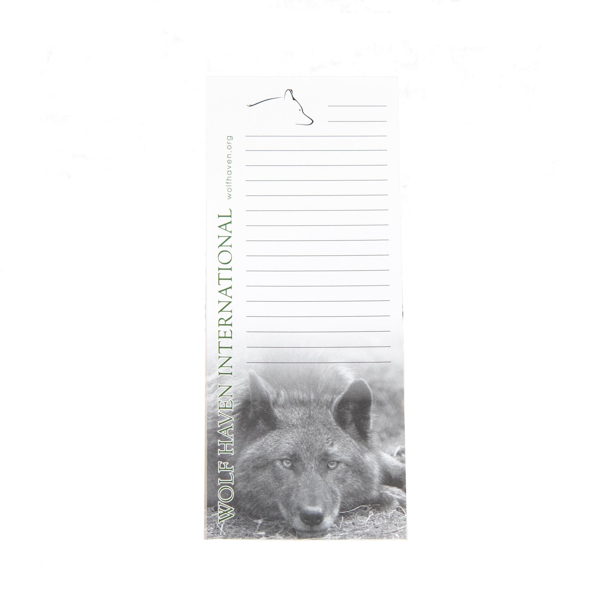 If you are looking for a way to conveniently take notes around the home or office, look no further than our Wolf Haven notepad featuring a regal wolf along the bottom of each page.